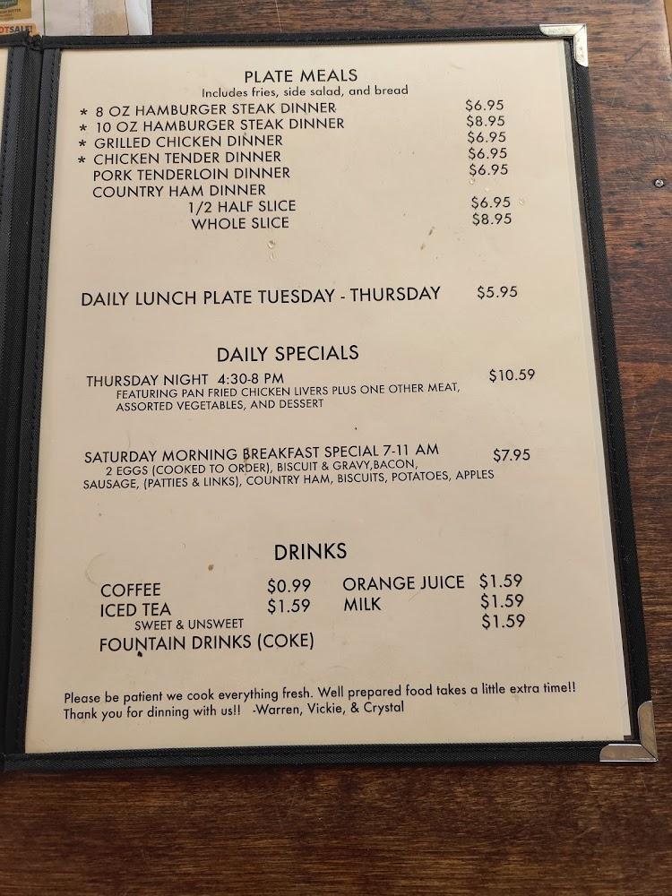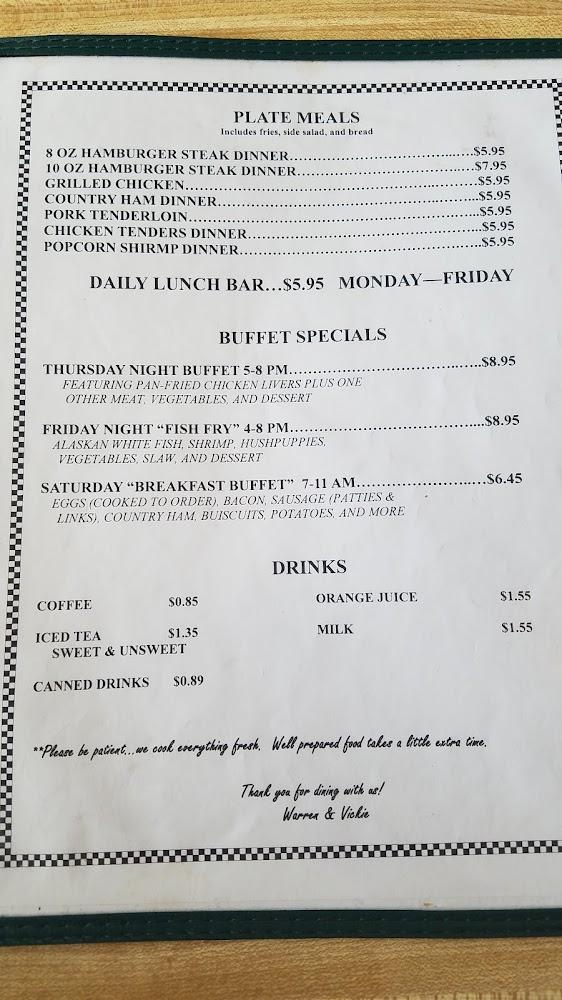 Vegetables and fresh ingredients add colors to all plates. Sweet tea accompanies meals, enhancing the local dining experience. The diner keeps it classic: simple and satisfying, a nod to traditional southern cuisine. Come for the food, stay for the warm hospitality!